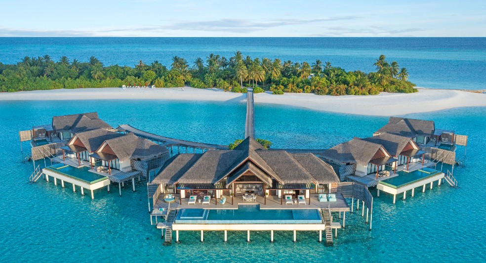 The crown jewel – an overwater world of five pool villas for up to 22 guests. 14 Adults and 8 children.  Enjoy the expanse. A Two Bedroom Ocean Pool Pavilion, beats at The Crescent’s heart, flanked by two One Bedroom Ocean Pool Pavilions and two Deluxe Over Water Pool Villas, all five with private pools. Two dedicated Thakurus (Villa Host) to keep your island oasis running smoothly. Perfect your private experiences of  poolside barbecue and movie under the stars with your picnic basket.