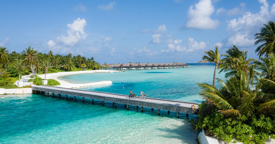 Our two islands, lush and alive with jungle and birdsong, form their own little world which you can crisscross by bicycle – discovering hidden coves, treetop adventures, and where the makanaa bask in the shallows. At the tip of one is our private surf break, at the tip of the other (then half a kilometre more) our underwater restaurant where you can dine with sea turtles. Then there are our overwater villas, our torchlit jungle camp…let loose in the world’s most luxurious playground, as you reconnect with yourself, with nature and with fellow free spirits.