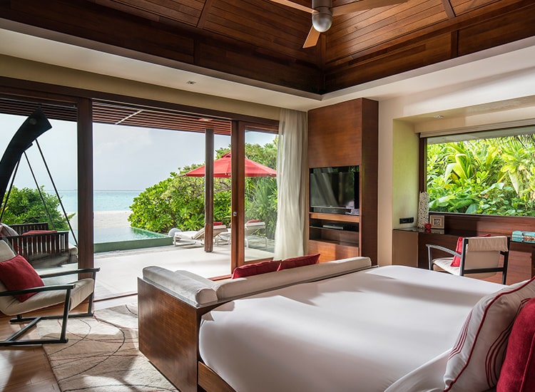 每栋别墅都带有完全私密的平台,让您尽情享受户外淋浴、月光下畅游,或在午后惬意地沐浴阳光。然而,足不出户同样可以尽享奢华。每栋别墅都配备特大双人床,Deli-In熟食区的全尺寸冰箱里满是诱人美味,客房内娱乐系统包括LED电视、博士环绕声系统和一系列国际电影,还有Thakuru(管家)服务,让您尽享极致豪华。